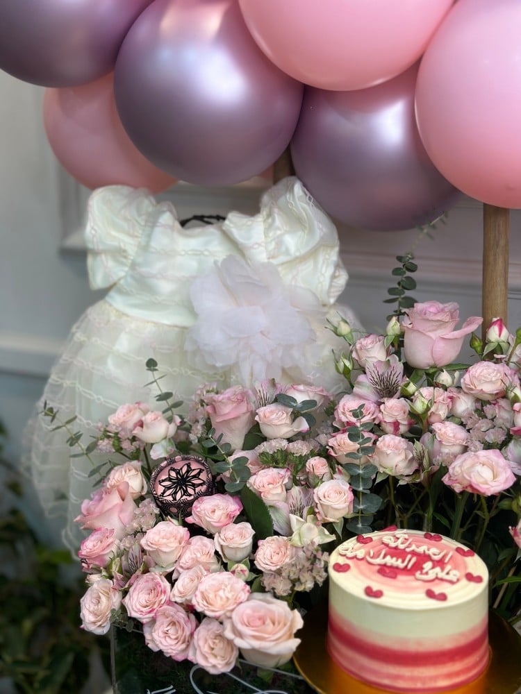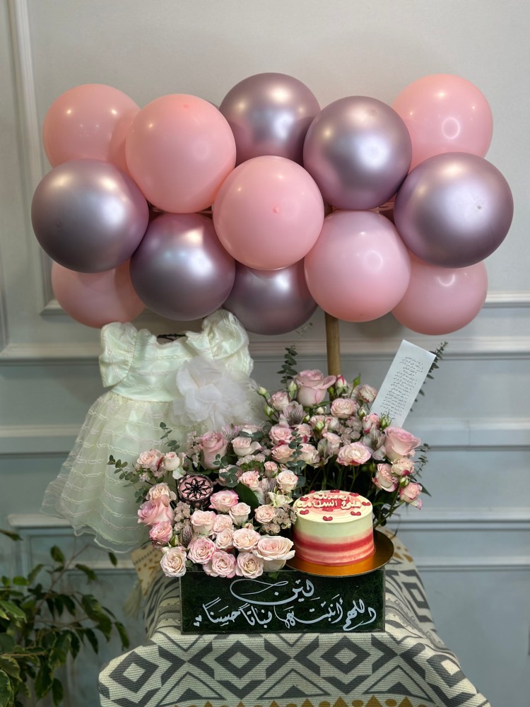 هدية مولودة ، كيكة وحلق ذهب و فستان